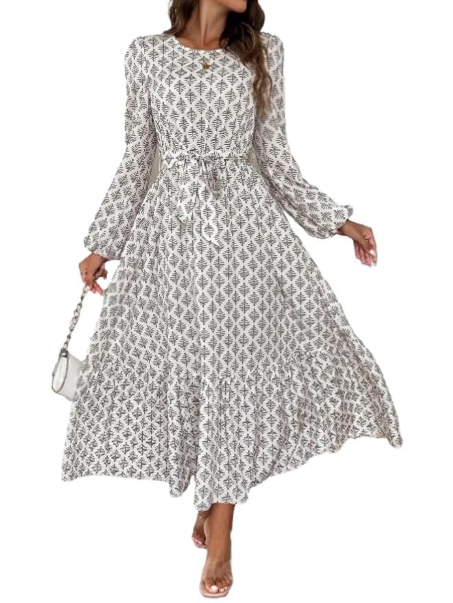LUOLINGONGJUE® Women’s Printed Lantern Sleeve Ruffled Long Dress – Lightweight & Comfortable